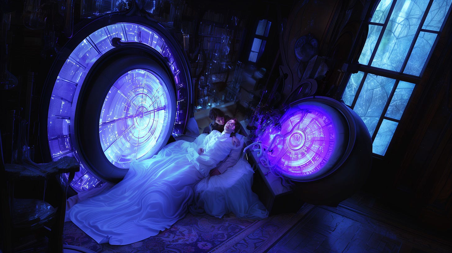 Lila turned away from the Aetheric Resonator, where she'd been meticulously adjusting the delicate wiring that would connect to the nodes embedded directly into Robert's temporal arteries. A bittersweet smile played on her lips as she met her brother's eyes, their shared hope a fragile flame flickering against harsh reality.